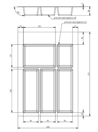 - wkład szufladowy dedykowany do szuflad o głębokości 450 i 500mm,