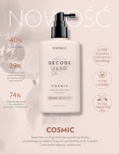 Cosmic zawiera aż 94% składników naturalnych, w tym wyciąg z orchidei oraz wyciągi z lnu i chia.