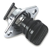 Korek spustowy z zabezpieczeniem, obudowa wykonana z mosiądzu chromowanego - korek plastikowy w kolorze czarnym.