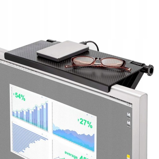 - uniwersalne wykorzystanie, półkę montujemy na górę ekranu monitora komputera lub TV,