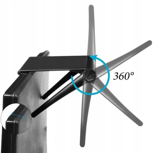 - Wystarczy umieścić ją na górze ekranu, wyregulować nóżki pod żądanym kątem i dokręcić jedno pokrętło, aby zabezpieczyć go na miejscu