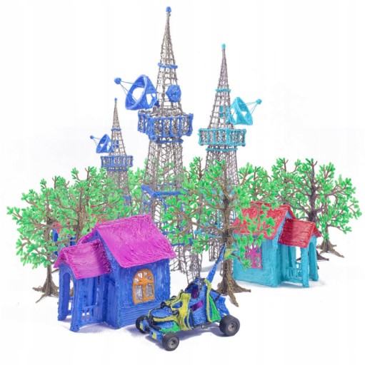 - Filamenty w tym zestawie są wykonane z biodegradowalnego PLA, który cechuje się dużą wytrzymałością i pozwala na trwałość przygotowywanych modeli.