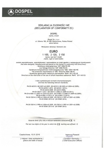 CERTYFIKAT ZGODNOŚCI DOSPEL