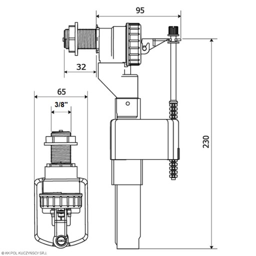 Zawór pływakowy napełniający do spłuczek tworz. 3/8" KK-POL ZN2/110/0/T