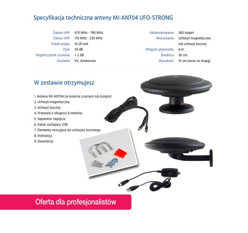 SPECYFIKACJA TECHNICZNA ANTENY MI-ANT04 UFO-STRONG