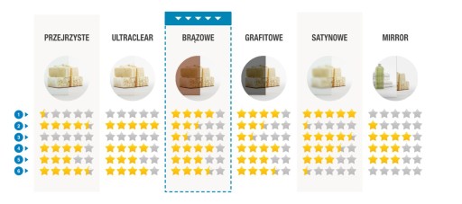 Tabela porównawcza właściwości użytkowych dostępnych wariantów szkła