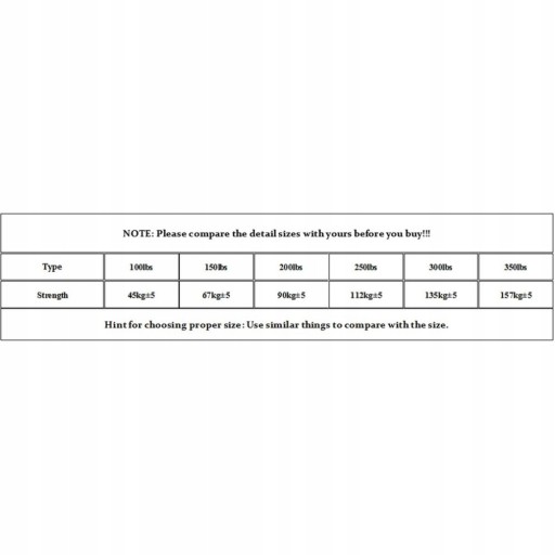 Wytrzymałości 45kg ± 5 67kg ± 5 90kg ± 5 112kg ± 5 135kg ± 5 157kg ± 5