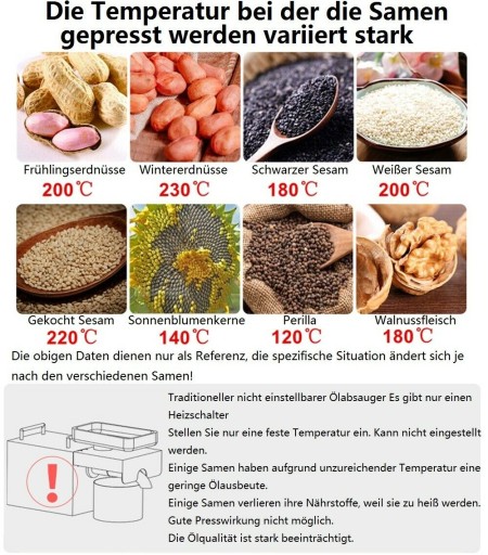 Tłoczenie na gorąco bez smażenia - z wbudowaną grzałką termostatyczną ciesz się naturalnym i zdrowym olejem.Smażenie i prasowanie na gorąco - smażąc przez 5 minut, olej staje się czysty i aromatyczny.
