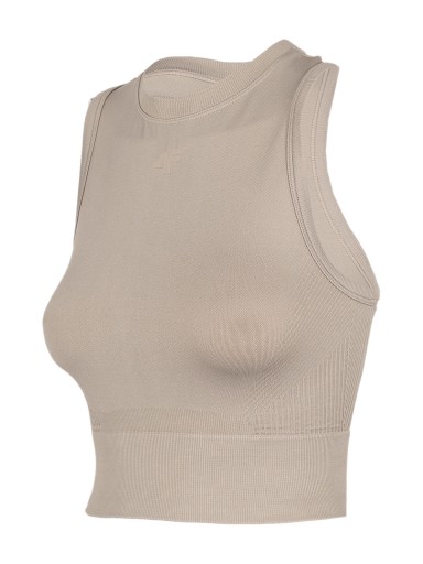 Top treningowy bezszwowy damski TSDF015 z najnowszej kolekcji 4F. Uszyty z elastycznej dzianiny z dodatkiem elastanu. Szybkoschnące wykończenie 4FDry wspiera odprowadzanie wilgoci.