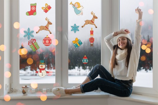 Komplet naklejek można samodzielnie skomponować według uznania. Jest ich duża ilość dzięki czemu można ładnie udekorować nawet kilka okien