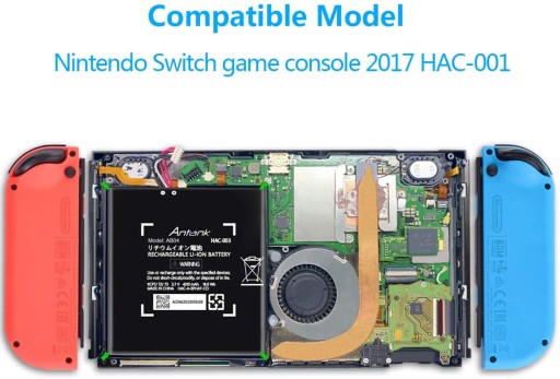 Ta bateria HAC-003 jest kompatybilna tylko z konsolą Nintendo Switch [2017] Jest to zintegrowana bateria zastępcza do konsoli. Nie nadaje się do Joy-Con i Switch Lite.