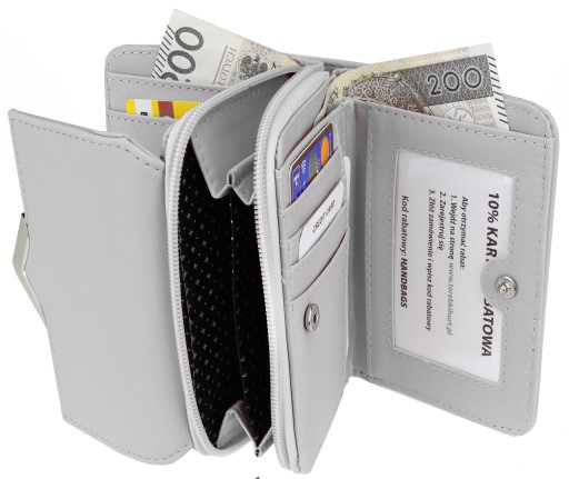 - 1 kieszeń na bilon zamykaną na zamek błyskawiczny.