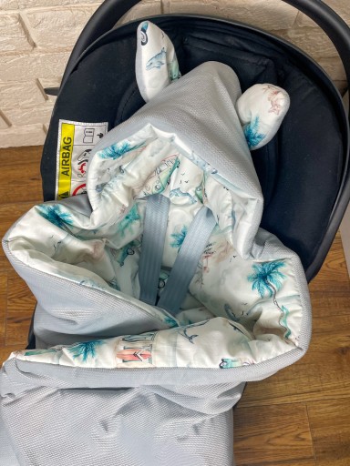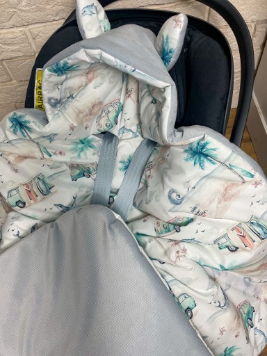 Śpiworek idealnie sprawdzi się na podczas jazdy samochodem oraz wózkiem. Kapturek dodatkowo chroni główkę przed wiatrem.