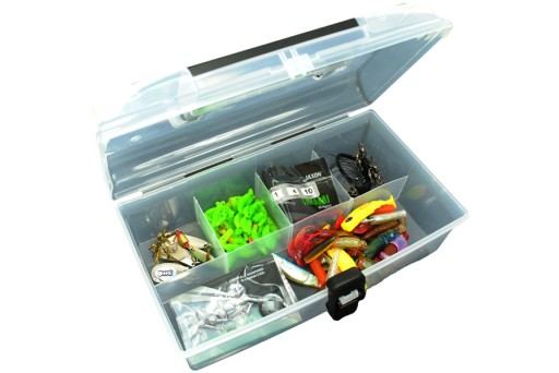 Posiada 5 poprzecznych przegródek. Idealne dla spinningisty i nie tylko - pozwala bezpiecznie rozdzielić mniejsze akcesoria takie jak spławiki, twistery, rippery, główki, ołów, stopery itd.