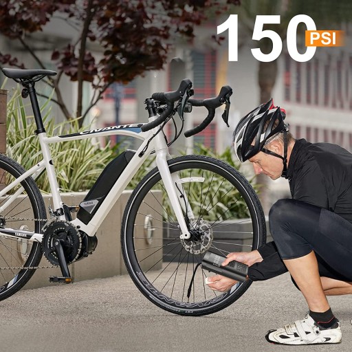 Ten kompresor rowerowy posiada jasne światła LED z trzema trybami (oświetlenie, ostrzeżenie, SOS).