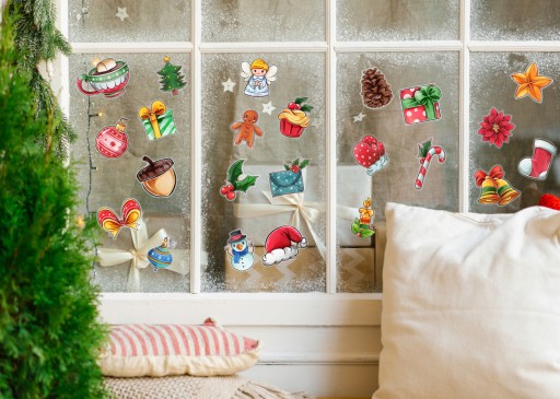 Komplet naklejek można samodzielnie skomponować według uznania. Jest ich duża ilość dzięki czemu można ładnie udekorować nawet kilka okien