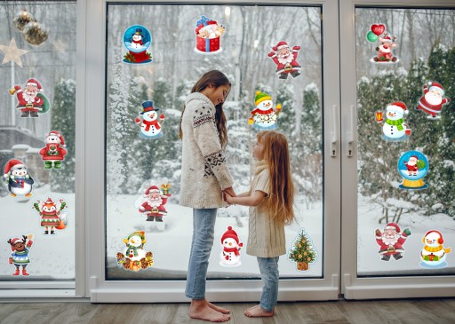Komplet naklejek można samodzielnie skomponować według uznania. Jest ich duża ilość dzięki czemu można ładnie udekorować nawet kilka okien