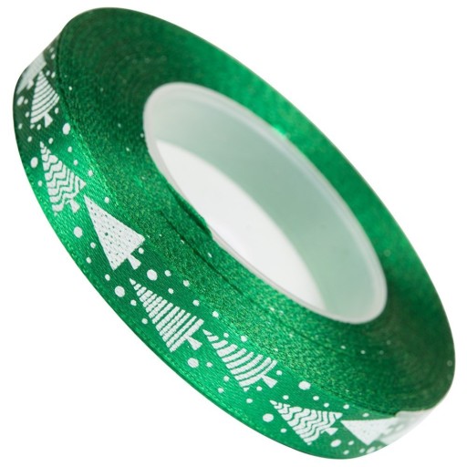 РОЖДЕСТВЕНСКАЯ ЕЛКА ЗЕЛЕНАЯ ЛЕНТА АТЛАСНАЯ 12мм