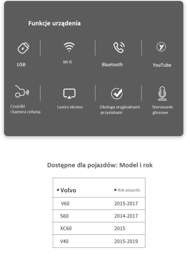Przy składaniu zamówienia proszę podać model i datę produkcji samochodu. Na przykład: 2016 S60