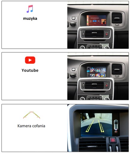 - Apple CarPlay , AirPlay , Android auto , Lustro ekranu , WIFI , Bluetooth, USB, youtube