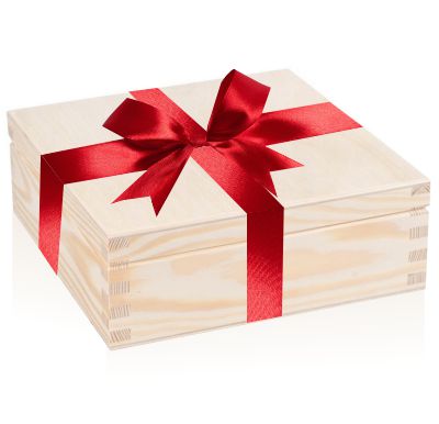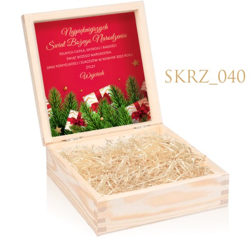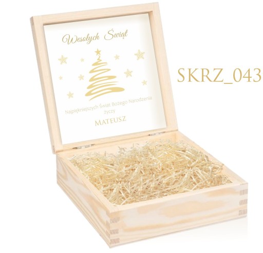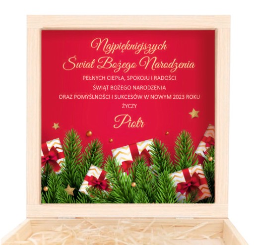 Drewniana skrzynka jest idealnym opakowaniem na świąteczny prezent. Personalizowana naklejka sprawi, że obdarowana osobą poczuję się naprawdę wyjątkowo.