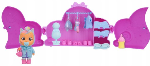 Zestaw Cry Babies Magic Tears Garderoba lalki Jenna IMC82793 od TM Toys zamknięty w ślicznej kapsule pozwoli na zabawę mini laleczką oraz modą. Elementy zestawu umożliwiają tworzenie różnych ubiorów dla laleczki. Wszystkie akcesoria i dodatki przechowasz w garderobie lalki Jenny.