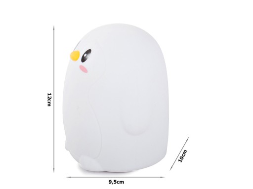 Lampka została wykonana z mięciutkiego, miłego w dotyku silikonu. Pingwin odporny jest na upadki i zgniecenia, dzięki temu będzie służył przez długi czas jako lampka oraz mięciutka przytulanka, którą można zabrać do łóżka w trakcie usypiania. Z pewnością przyda się dzieciom, które boją się lub nie lubią usypiać w ciemności.