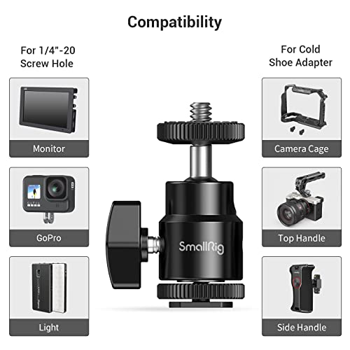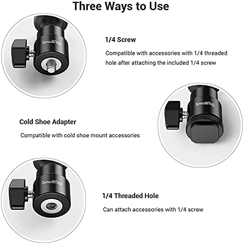 SMALLRIG Głowica kulowa Mini statyw z adapterem gorącej stopki 1/4, obrotowa głowica kulowa 360 ° z adapterem gorącej stopki do monitora LCD, mikrofonu, światła LED - 761