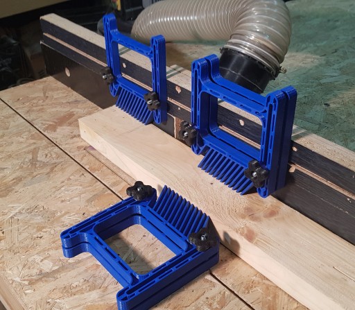 Grzebienie dociskowe podczas prac stolarskich zapobiegają wypadkom podczas pracy frezarkami, pilarkami itp. jak również używane są jako ogranicznik.