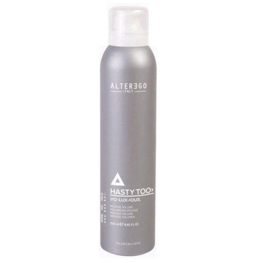 Alter Ego Hasty Too Vo-Lux-Ious to pianka zwiększająca objętość i ułatwiająca modelowanie do włosów. Stabilnie utrwala fryzury, dodając pasmom objętości. Dzięki swoim antystatycznym właściwościom zapobiega puszeniu się włosów. Produkt przywraca witalność oraz elastyczność włosom cienkim i pozbawionym blasku.