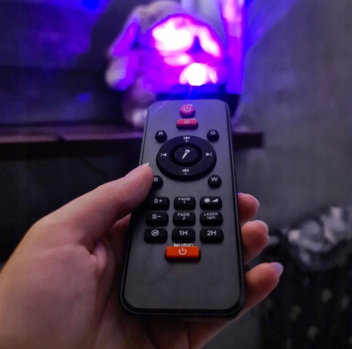 Funkcjami projektora można sterować za pomocą pilota IR, dzięki czemu nie trzeba mieć bezpośredniego dostępu do kuli za każdym razem, kiedy chcemy zmienić efekt świecenia lub dokonać zmiany muzyki.