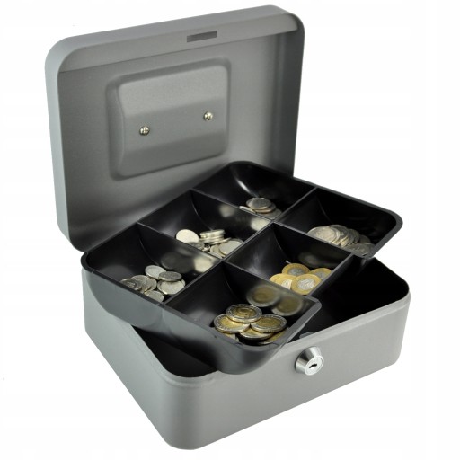 ✅ Kasetka metalowa na pieniądze z wkładem na bilon - 200 x 160 x 90 mm