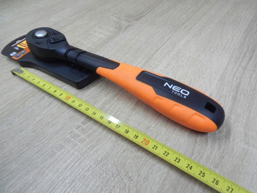 Grzechotka odgięta 1/2" NEO o długości 250 mm, wykonana zgodnie z normą DIN 3122. Korpus grzechotki z kompozytu o wysokiej wytrzymałości. 72-zębowy mechanizm zapadkowy umożliwia precyzyjną pracę, wykonany jest z wyjątkowo trwałej stali chromowo-molibdenowej, przedłużającej żywotność narzędzia. Ergonomiczny uchwyt dwumateriałowy poprawia komfort pracy. Jakość narzędzia potwierdzona certyfikatem TÜV i 25-letnią gwarncją producenta. Marka NEO spełnia oczekiwania profesjonalistów.