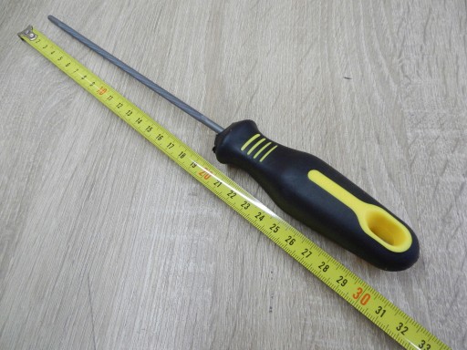Pilnik przeznaczony do ostrzenia łańcuchów pił łańcuchowych. Wykonany z wysokiej jakości stali łożyskowej GCr15. Ergonomiczny uchwyt z tworzywa sztucznego, pokryty antypoślizgowym materiałem zapewnia wygodę i bezpieczeństwo podczas pracy.