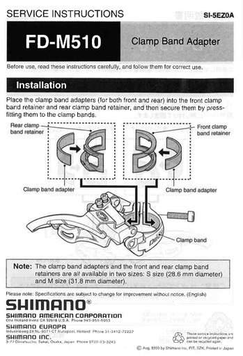 NOWY oryginalny adapter do obejmy przerzutki przedniej SHIMANO DEORE FD-M510 SM-AD20-B z 34,9 na 28,6 mm.