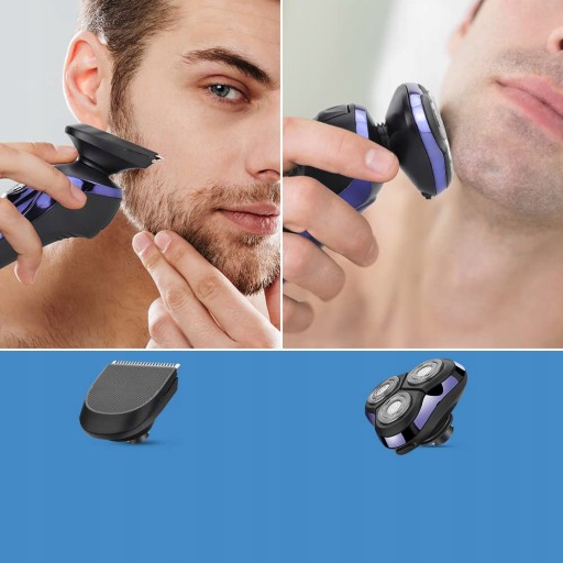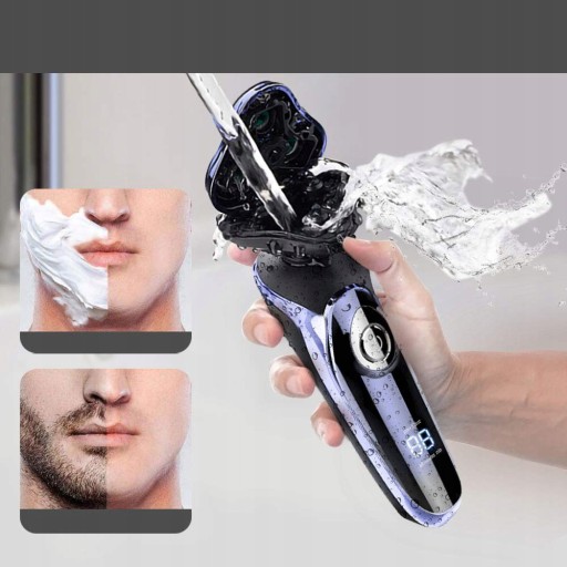 Męska elektryczna maszynka do golenia wygina się w 4 kierunkach, 3 elastyczne ostrza z podwójnym cięciem siatki, elastyczne i obrotowe głowice golące dopasowują się do konturów skóry.