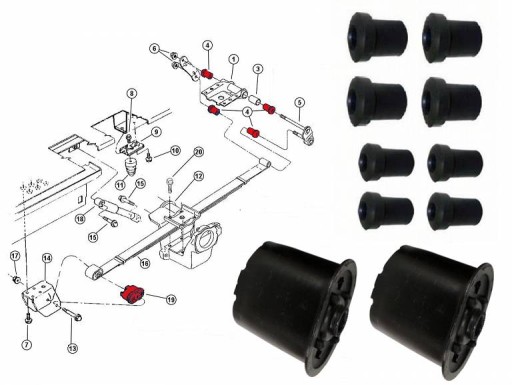 TULEJE RESORÓW ZESTAW NAPRAWCZY NA DWA RESORY (OBIE STRONY AUTA)