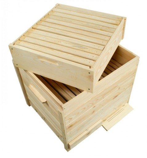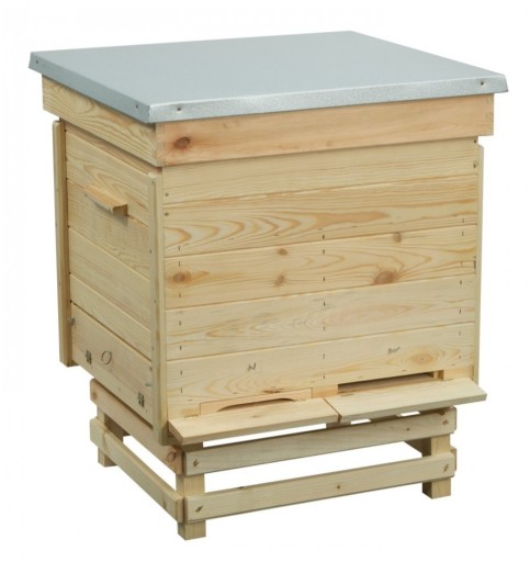 Ul wykonany z drewna sosnowego i ze sklejki, ocieplony. W komplecie zestawu komplet ramek i stojak pod ul.