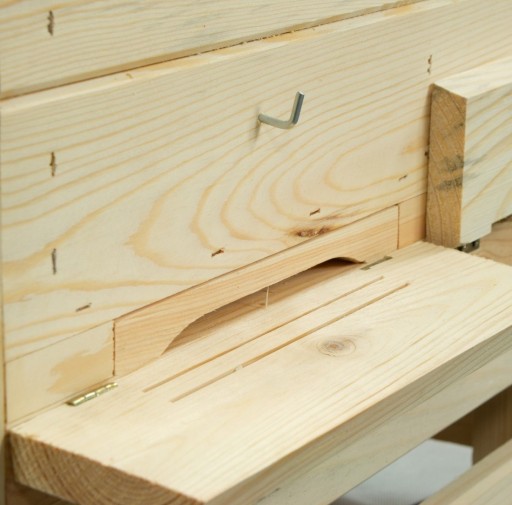W bocznej części ula zostały zamontowane specjalne drzwiczki dzięki którym mamy dostęp aby wyczyścić ul.