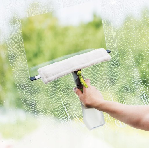 Myjka do okien 3w1 z pojemnikiem na wodę i spryskiwaczem to wygodne i skuteczne narzędzie. Za pomocą spryskiwacza spryskasz detergentem szybę, nakładką umyjesz, a ściągaczką usuniesz wodę.