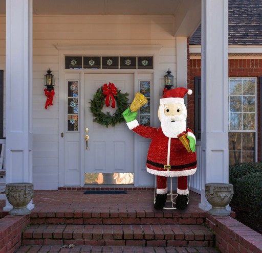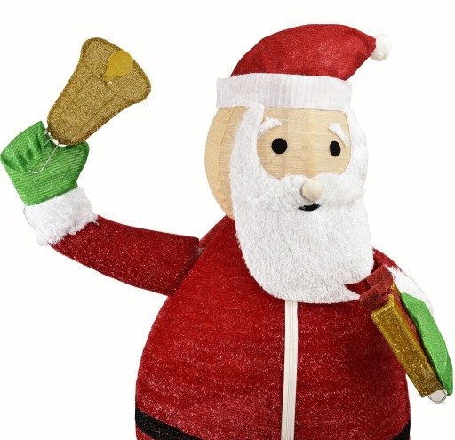 Radosna dekoracja bożonarodzeniowa stwarzająca prawdziwy świąteczny nastrój. Mikołaj wysokości 1,8 m ma sympatyczny wygląd.