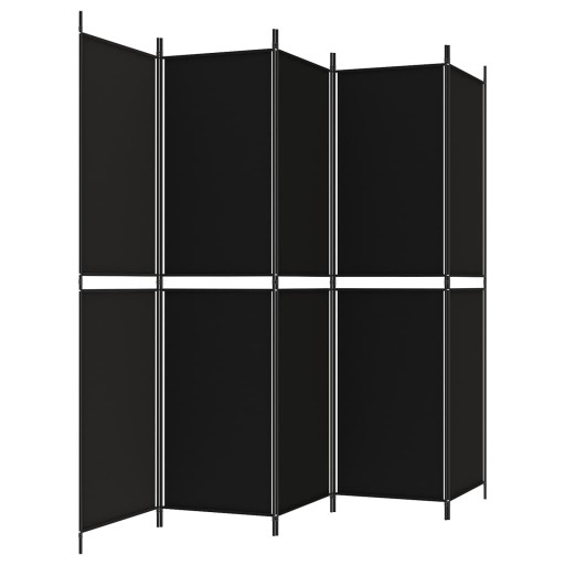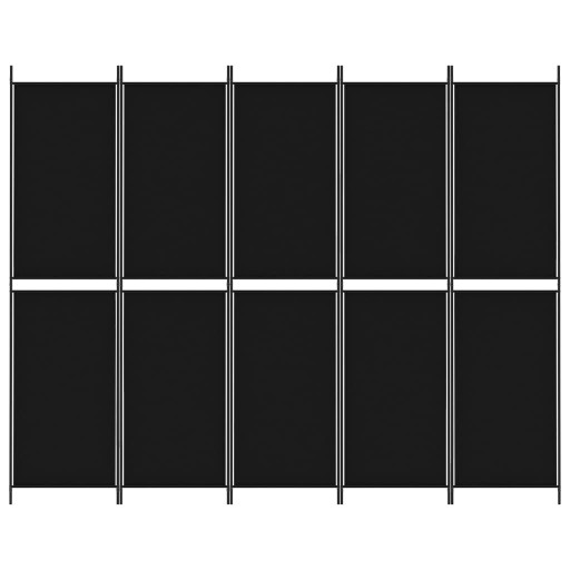 Parawan 5-panelowy, czarny, 250x200 cm, tkanina