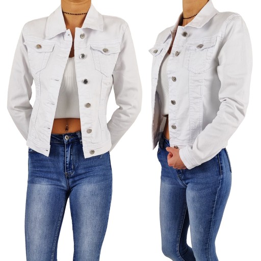 Świetna kurtka jansowa Biała zapinana na srebrne guziki , można ją wykorzystać w każdej stylizacji, zarówno do klasycznych jeansów i czarnego T-shirtu na codzienne wyjścia, jak i do kobiecych sukienek dodając im rockowego charakteru. Jest to zdecydowany must have w każdej garderobie!