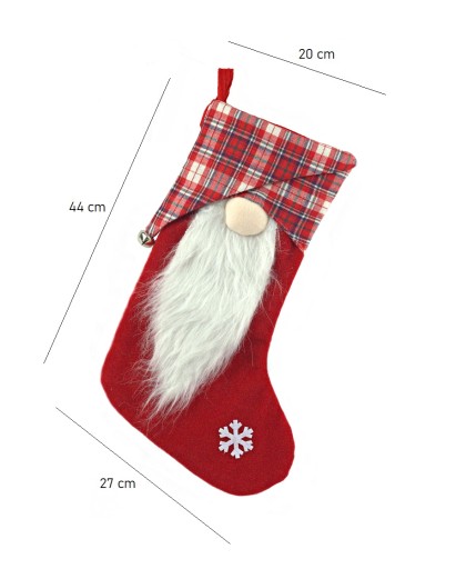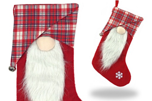 Zestaw 3 x duża skarpeta świąteczna na prezenty 3D - Świąteczny Gnom z dzwonkiem 44 cm