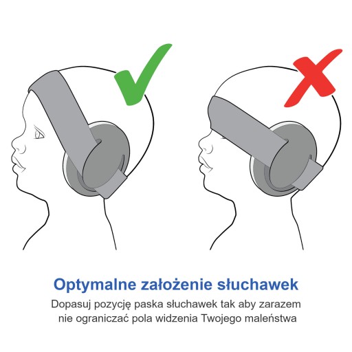 - Pozwala zamocować słuchawki bez wywierania nacisku na delikatną główkę dziecka