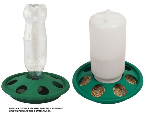 Poidło na butelkę zostało wykonane z bardzo wysokiej jakości tworzywa sztucznego. Składa się z dwóch elementów: przykrywki oraz miski. Poidło jest bardzo uniwersalne. Można w nim zamontować butelkę od 0,5l do 1,0l. Sprawdzi się dla wszelkiego rodzaju drobiu już od pierwszych dni życia.