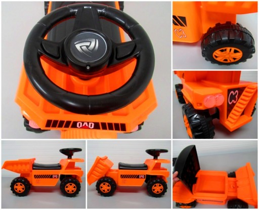 Jeździkiem dziecko kieruje samodzielnie, siedząc za kierownicą i odpychając się nóżkami. Jeździkiem dziecko może jechać do przodu i do tyłu, może skręcać w prawo i w lewo.