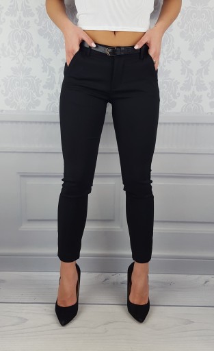 Eleganckie klasyczne spodnie cygaretki 7/8, posiadają wysoki stan. Świetne w połączeniu ze szpilkami, dzięki swojej uniwersalności, pasują niemal do każdej stylizacji. Elastyczny materiał podkreśla kobiecą sylwetkę. Spodnie są dopasowane, rozciągają się. Podkreśl swoje kobiece kształty! Spraw, by Twój codzienny Look był niepowtarzalny.
