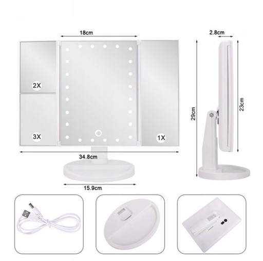 - 22 diod LED, oświetlenie lustra pomaga nam dokładniej nałożyć makijaż