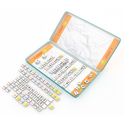 - w zestawie znajduje się 138 magnesów z cyframi i znakami matematycznymi, 2 kostki do gry
